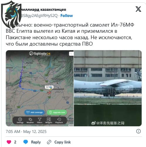 The flight has sparked considerable speculation following a post on X, in which an observer noted that the Il-76MF departed from China and stopped in Pakistan, leading to the suggestion that it could be transporting air defense systems.